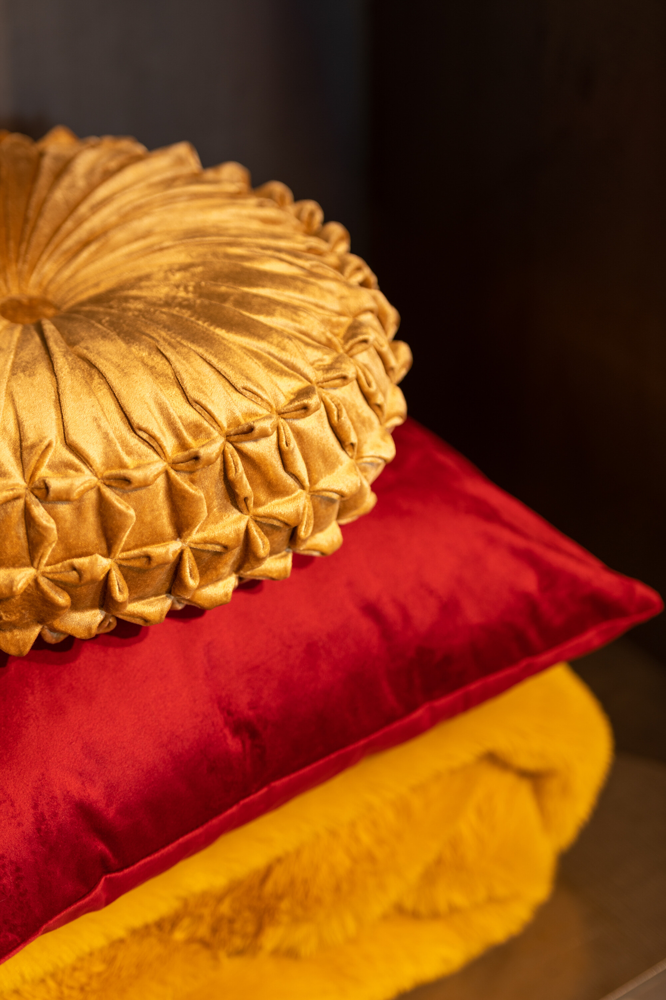 Magst du es gemütlich? Dann ist unser Plaid „Cutie“ in Ocker genau das Richtige für Sie.