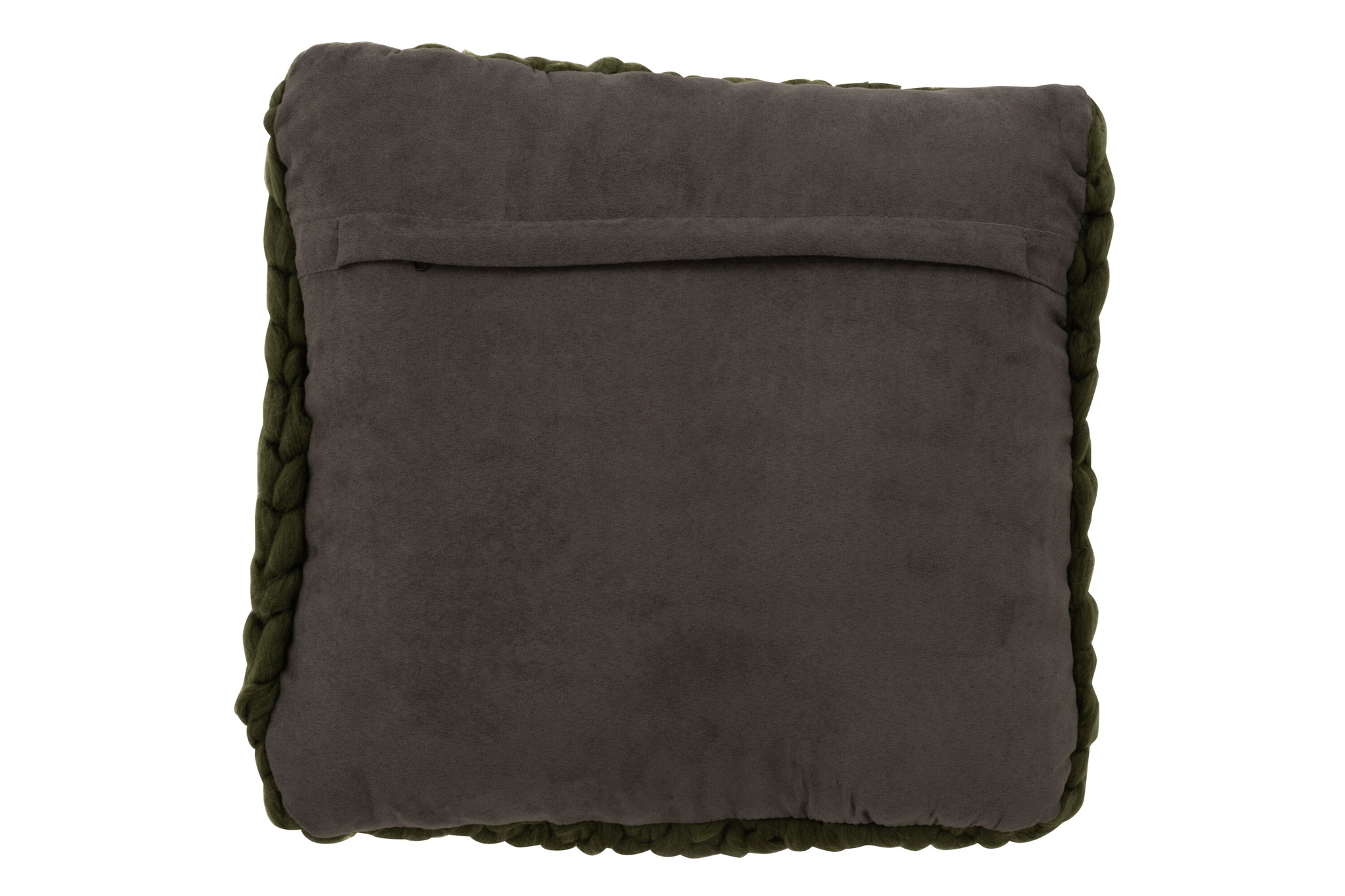Verleihen Sie Ihrem Zuhause mit dem grünen gestrickten Acrylkissen eine gemütliche Note. Es besteht aus 75 % Polyester und 25 % Acrylstoff, was für weiche Haptik, Langlebigkeit und angenehmen Sitzkomfort sorgt.